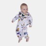 Macacão manga longa com estampa corrida, abertura na gola entre as pernas por tic-tac para facilitar o vestir, confeccionado em tecido meia-malha 100% algodão.