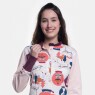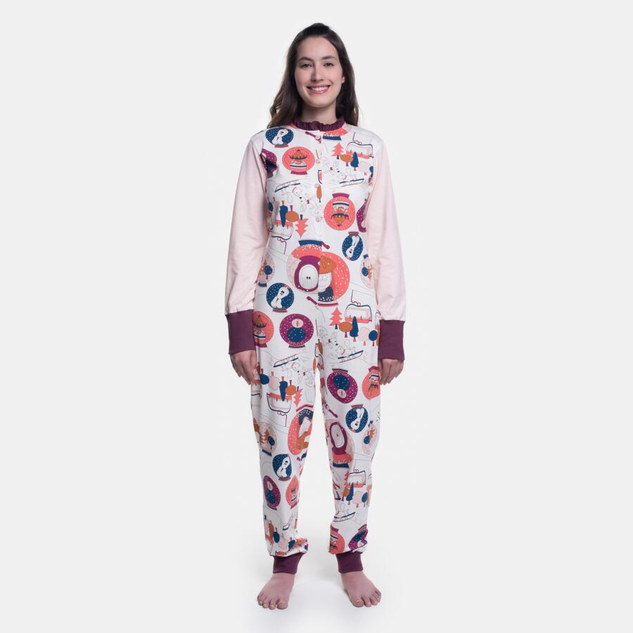 Macacão manga longa com estampa corrida, com abertura, babado na gola e punho na manga, confeccionado em tecido meia-malha 100% algodão.