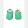 Pantufa com tecido liso e estampa corrida na sola, com etiqueta decorativa, confeccionada com tecido meia-malha 100% algodão e enchimento 100% poliéster e sola em EVA. Imagem ilustrativa, podendo ocorrer variações na posição da estampa.