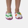 Pantufa com abertura com estampa corrida, confeccionada em tecido meia-malha 100% algodão, enchimento 100% poliéster e sola em EVA.