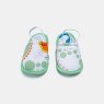 Pantufa fechada, com estampa corrida, confeccionada em tecido meia-malha 100% algodão, enchimento 100% poliéster e sola em EVA.