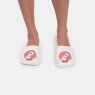 Pantufa fechada, com estampa local, confeccionada em tecido meia-malha 100% algodão, enchimento 100% poliéster e sola em EVA.
