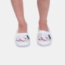 Pantufa fechada com estampa local, confeccionada em tecido meia-malha 100% algodão, enchimento 100% poliéster e sola em EVA.