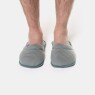 Pantufa fechada em tecido listrado, etiqueta, confeccionada em tecido meia-malha 100% algodão, enchimento 100% poliéster e sola em EVA.