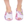 Pantufa aberta com estampa corrida, confeccionada em tecido meia-malha 100% algodão, enchimento 100% poliéster e sola em EVA. Imagem ilustrativa, podendo ocorrer variações na posição da estampa.