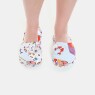 Pantufa aberta, com estampa corrida, confeccionada em tecido meia-malha 100% algodão, enchimento 100% poliéster e sola em EVA. Imagem ilustrativa, podendo ocorrer variações na posição da estampa.
