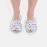 Pantufa aberta, com estampa corrida, confeccionada em tecido meia-malha 100% algodão, enchimento 100% poliéster e sola em EVA. Imagem ilustrativa, podendo ocorrer variações na posição da estampa.