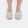 Pantufa aberta, com estampa corrida, confeccionada em tecido meia-malha 100% algodão, enchimento 100% poliéster e sola em EVA. Imagem ilustrativa, podendo ocorrer variações na posição da estampa.