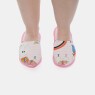 Pantufa com abertura confeccionada com estampa corrida meia-malha 100% algodão, enchimento 100% poliéster e sola em EVA.