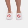 Pantufa fechada, com estampa local, confeccionada em tecido meia-malha 100% algodão, enchimento 100% poliéster e sola em EVA.