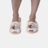 Pantufa com abertura, estampa local, confeccionada em tecido meia-malha 100% algodão, enchimento 100% poliéster e sola em EVA.