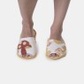 Pantufa com abertura, estampa corrida, confeccionada em tecido meia-malha 100% algodão, enchimento 100% poliéster e sola em EVA.