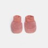 Sapatinho de bebê em tecido colorido, confeccionado em tecido plush (74% poliéster / 26% viscose).