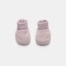 Sapatinho de bebê em tecido colorido, confeccionado em tecido plush (74% poliéster / 26% viscose).