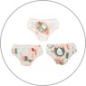 Kit composto por 3 unidades de calcinhas, sendo duas com estampa corrida e uma com estampa local, elástico nas bordas, confeccionadas em tecido meia-malha 100% algodão.
