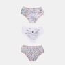 Kit composto por 3 unidades de calcinhas, sendo duas com estampa corrida e uma com estampa local, elástico nas bordas, confeccionadas em tecido meia-malha 100% algodão.