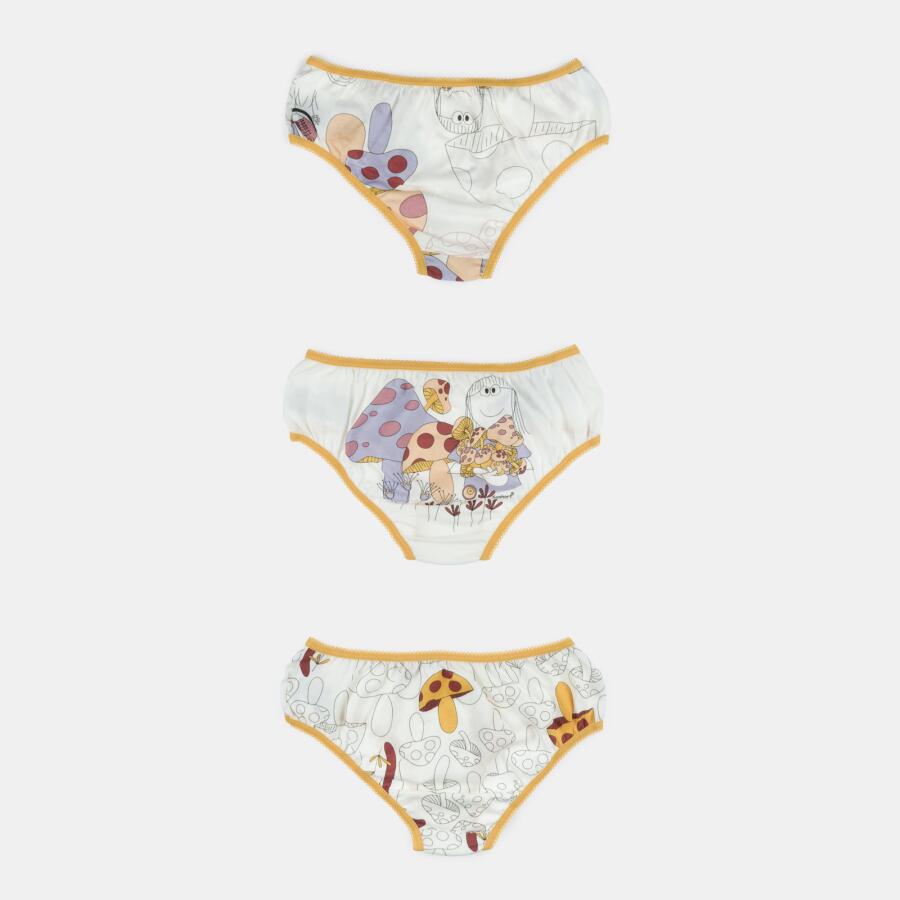 Kit composto por 3 unidades de calcinhas, sendo duas com estampa corrida e uma com estampa local, elástico nas bordas, confeccionadas em tecido meia-malha 100% algodão.