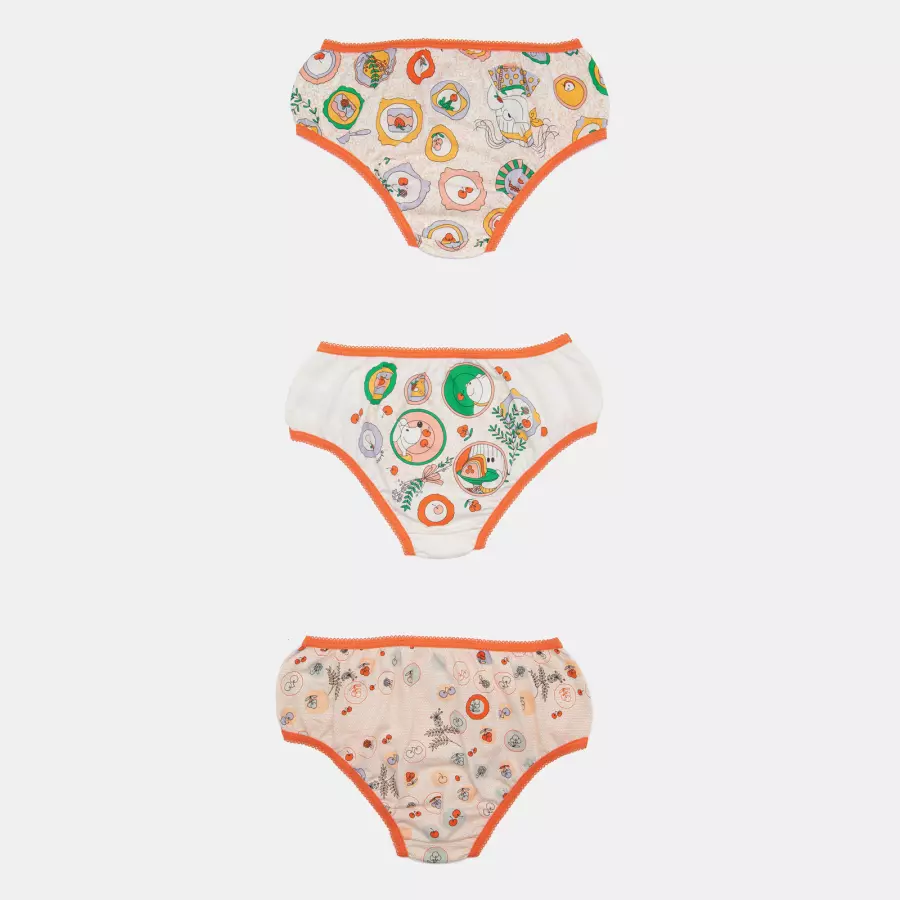 Kit composto por 3 unidades de calcinhas, sendo duas com estampa corrida e uma com estampa local, elástico nas bordas, confeccionadas em tecido meia-malha 100% algodão.