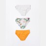 Kit composto por 3 unidades de cuecas, sendo uma com estampa corrida, uma em tecido liso e uma em tecido colorido, todas com efeito trançador na costura, confeccionadas em tecido meia-malha 100% algodão.