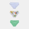Kit composto por 3 unidades de cuecas, sendo uma com estampa corrida, uma em tecido liso e uma em tecido colorido, todas com efeito trançador na costura, confeccionadas em tecido meia-malha 100% algodão.