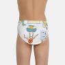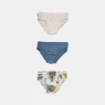 Kit composto por 3 unidades de cuecas, sendo uma com estampa corrida, uma em tecido liso e uma em tecido colorido, todas com efeito trançador na costura, confeccionadas em tecido meia-malha 100% algodão.