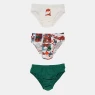 Kit composto por 3 unidades de cuecas, sendo uma com estampa corrida, uma com estampa local e uma em tecido colorido, elástico nas bordas, confeccionadas em tecido meia-malha 100% algodão.