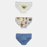 Kit composto por 3 unidades de cuecas, sendo uma com estampa corrida, uma com estampa local e uma em tecido colorido, elástico nas bordas, confeccionadas em tecido meia-malha 100% algodão.