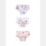 Kit composto por 3 unidades de calcinhas, sendo duas com estampa corrida e uma com estampa local, elástico nas bordas, confeccionadas em tecido meia-malha 100% algodão.