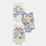 Kit body sem mangas composto por 3 unidades, sendo duas com estampa local e uma com estampa corrida, com abertura entrepernas e fechamento em botões tic-tac, confeccionados em tecido meia-malha 100% algodão.