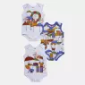 Kit body sem mangas composto por 3 unidades, sendo duas com estampa local e uma com estampa corrida com abertura entrepernas e fechamento em botões tic-tac, confeccionados em tecido meia-malha 100% algodão.