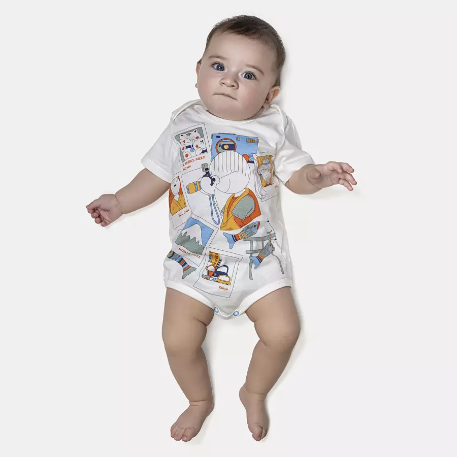 O body perfeito para a pele sensível do bebê. Feito em malha 100% algodão, oferece um toque super macio. A estampa unissex é um charme e os botões de pressão entre as pernas garantem praticidade total na hora da troca.