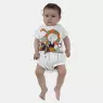 Body manga curta com estampa local e abertura entrepernas e fechamento em botões tic-tac, confeccionado em tecido meia-malha 100% algodão.