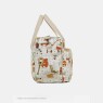 Bolsa de bebê, com fechamento em zíper, bolsos externos e internos, com elásticos externos para prender acessórios, confeccionada em lona com estampa corrida e alças de gorgorão. Dimensões da bolsa: 32cm X 38,5cm x 10cm (altura x largura x comprimento).