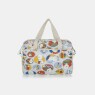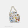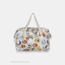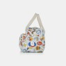 Bolsa de viagem com bolsos com fechamento em zíper, e bolsos externos laterais e posterior sem fechamento que facilitam a usabilidade, confeccionada em lona com estampa corrida e alças de gorgorão. Dimensões da bolsa: 34cm X 50cm x 21,5cm (altura x largura x comprimento).