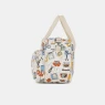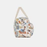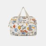 Bolsa de viagem com bolsos com fechamento em zíper, e bolsos externos laterais e posterior sem fechamento que facilitam a usabilidade, confeccionada em lona com estampa corrida e alças de gorgorão. Dimensões da bolsa: 34cm X 50cm x 21,5cm (altura x largura x comprimento).