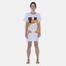 Camisão manga curta com estampa local na parte frontal e detalhe em viés no decote, confeccionado em tecido meia-malha 100% algodão.