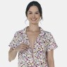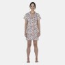 Camisão manga curta com detalhe em viés e decote com gola, abertura frontal e fechamento em botões em tecido com estampa corrida, confeccionada em tecido meia-malha 100% algodão.