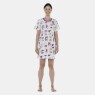 Camisão manga curta com estampa corrida e detalhe em viés no decote, confeccionado em tecido meia-malha 100% algodão.