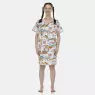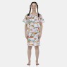 Camisão manga curta com estampa corrida e detalhe em viés na gola, confeccionado em tecido meia-malha 100% algodão.