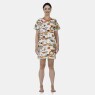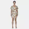 Camisão manga curta com estampa corrida e detalhe em viés na gola, confeccionado em tecido meia-malha 100% algodão.
