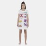 Camisão manga curta acinturado com estampa local na parte frontal, e detalhe em viés no decote, confeccionado em tecido meia-malha 100% algodão.