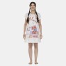 Camisão manga curta acinturado com estampa local na parte frontal, confeccionado em tecido meia-malha 100% algodão.