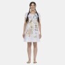 Camisão manga curta acinturado com estampa local na parte frontal e detalhe em viés na gola, confeccionado em tecido meia-malha 100% algodão.