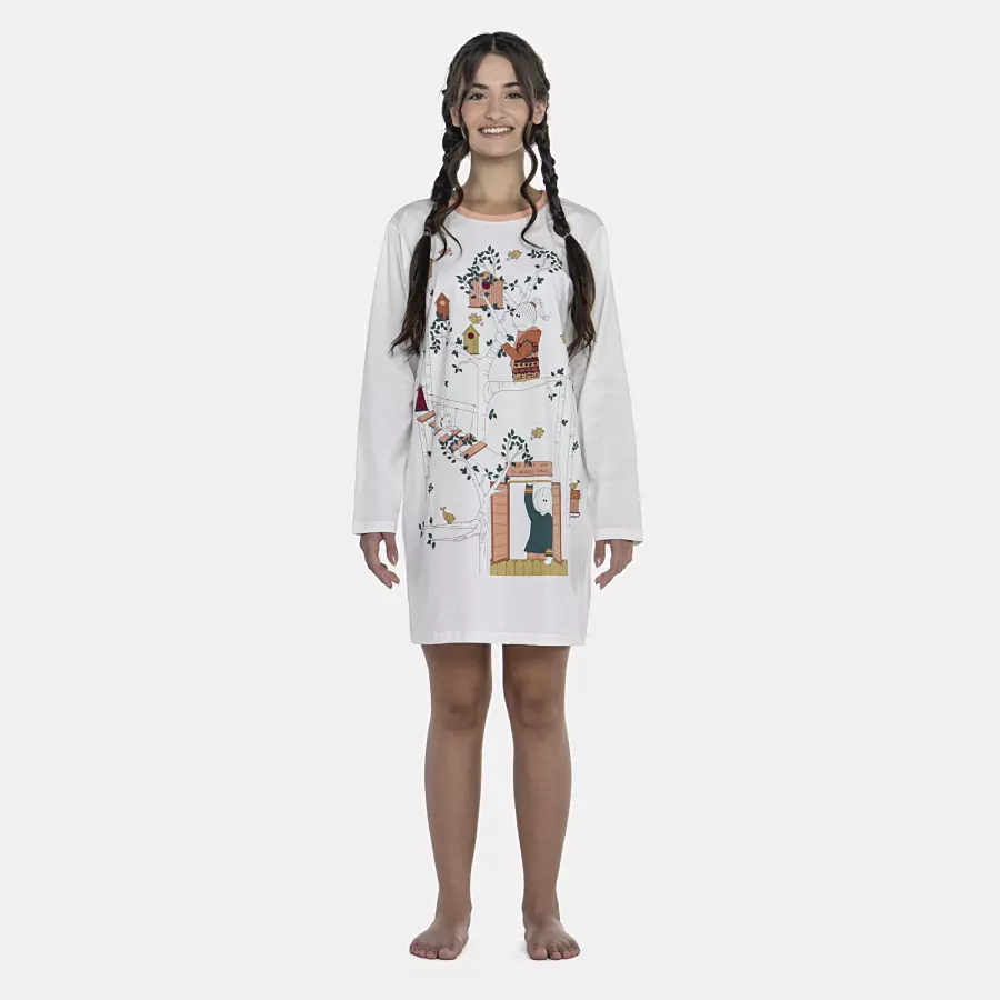Camisão manga longa com estampa local na parte frontal e detalhe em viés no decote, confeccionado em tecido meia-malha 100% algodão.