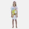 Camisão manga curta com estampa local na parte frontal e posterior e detalhe em viés no decote, confeccionado em tecido meia-malha 100% algodão.