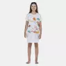 Camisão manga curta com estampa local na parte frontal e detalhe em viés no decote, confeccionado em tecido meia-malha 100% algodão.