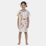 Camisão manga curta com estampa corrida e detalhe em viés na gola, confeccionado em tecido meia-malha 100% algodão.