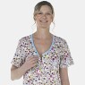 Camisola manga curta com abertura frontal e fechamento em botões em tecido com estampa corrida, confeccionada em tecido meia-malha 100% algodão.