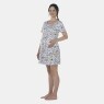 Camisola gestante manga curta com abertura frontal e fechamento por botões, com viés, lastex na cintura, confeccionada em tecido meia-malha 100% algodão com estampa corrida.