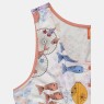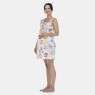 Camisola gestante regata, com abertura frontal e fechamento por botões, elástico abaixo dos busto, confeccionada em tecido meia-malha 100% algodão com estampa corrida.